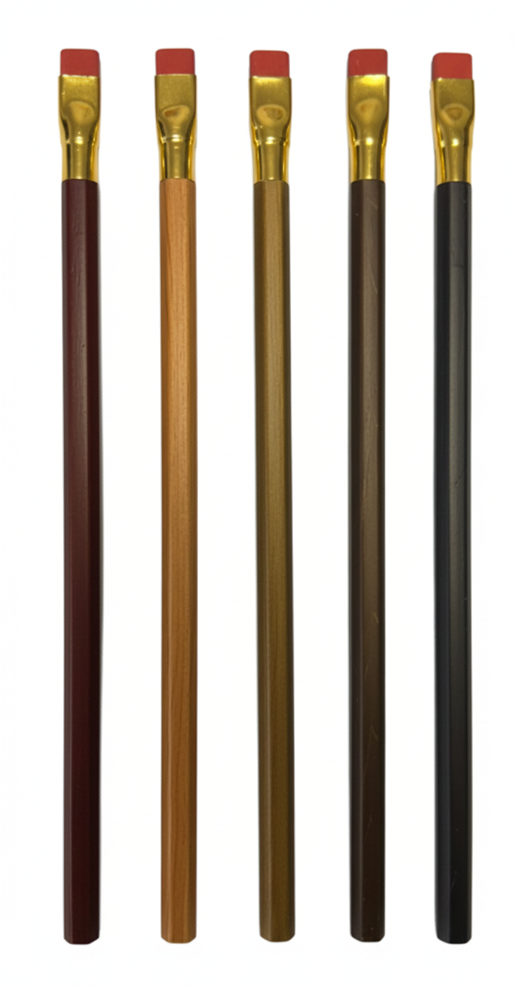 Lápiz de grafito negro con cuerpo hexagonal y acabado en colores sólidos. Un clásico de papelería funcional y versátil, pensado para proyectos de merchandising cultural, educativo y corporativo.